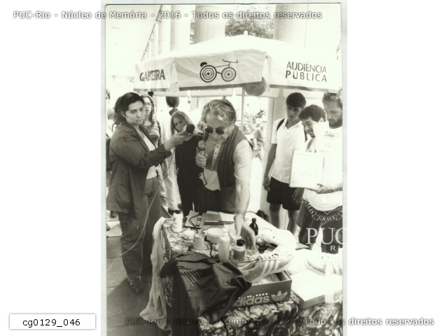 Fernando Gabeira, então deputado federal pelo Partido Verde do Rio de Janeiro, realiza campanha pela descriminalização da maconha nos pilotis da Universidade. |