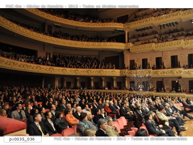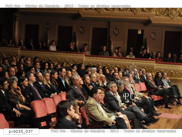 A plateia do Theatro Municipal, durante o concerto em homenagem ao Padre Hortal pelos 15 anos em que esteve à frente da reitoria da PUC-Rio. As apresentações foram realizadas pela Orquestra Sinfônica Brasileira, sob a regência do maestro Roberto Minczuk, e pelo pianista Nelson Freire. |