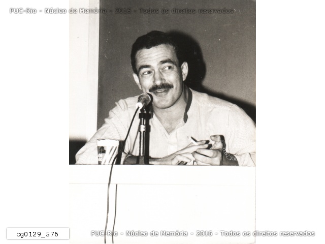 Quinta edição da Feira de Comunicação Social da PUC, que aconteceu do dia 28 de outubro a 1 de novembro de 1991. Na foto, está o cientista político, ex-deputado federal e articulista do Jornal do Brasil Marcio Moreira Alves, que foi um dos palestrantes da Feira. |