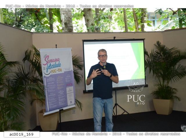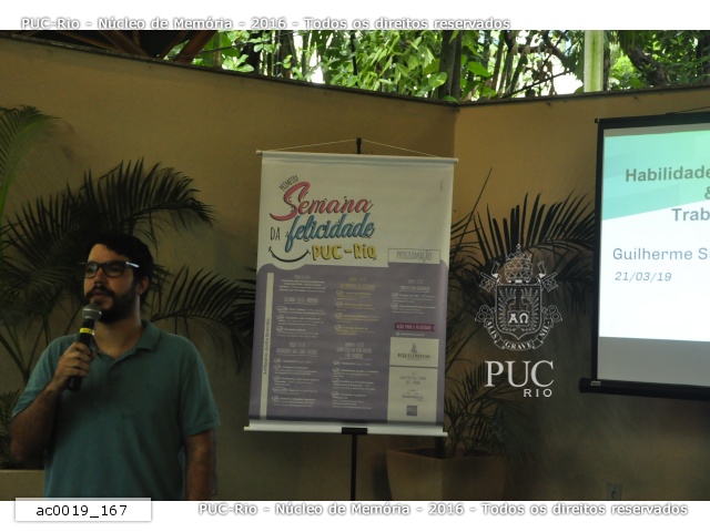 Palestra do mestrando Guilherme Sucupira sobre habilidades sociais e trabalho na Semana da Felicidade. Promovida pela Vice Reitoria Comunitária, o dia da palestra estava sob a temática sendo feliz na vida pessoal e no trabalho. |