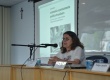 A professora do Departamento de Comunicação Socal Ítala Maduell na palestra sobre jornalismo investigativo sobre o papel da Abraji, promovida pelo Departamento de Comunicação Social.