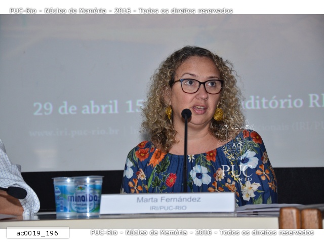 Marta Fernández, diretora do Instituto de Relações Internacionais, na palestra 'A Proteção Socioambiental da Pan-Amazônia: tendências e cenários', promovido pelo Instituto de Relações Internacionais da PUC-Rio e pelo BRICS Policy Center. |