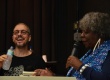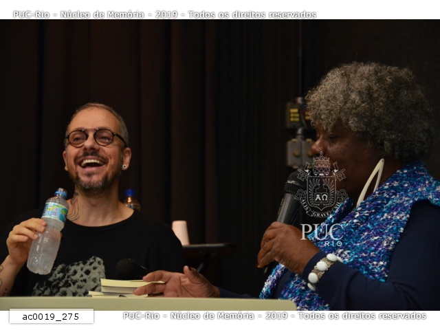 O professor, Sergio Mota, do Departamento de Comunicação Social e a escritora Conceição Evaristo em um bate papo, promovido pelo Departamento de Comunicação Social. |