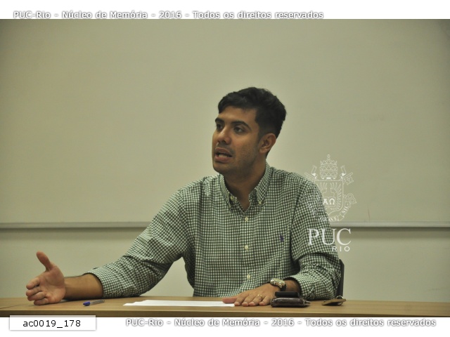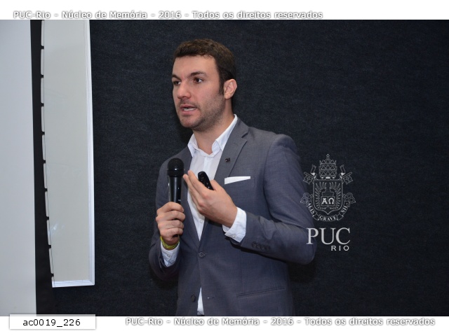 Coordenador Adjunto da Graduação e Professor do Quadro Complementar do Instituto de Relações Internacionais da Puc-Rio, Ricardo Oliveira, na palestra inaugural da Liga de Políticas Públicas da Puc-Rio. |