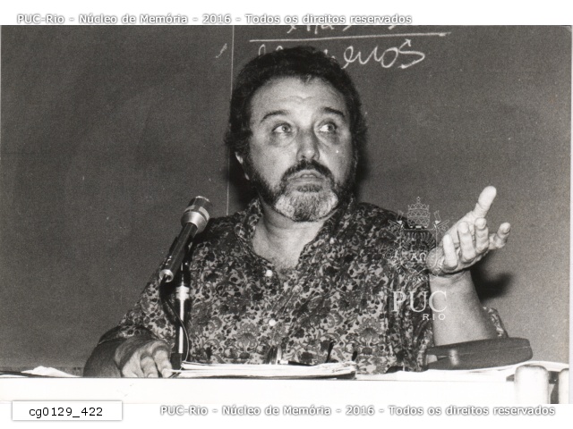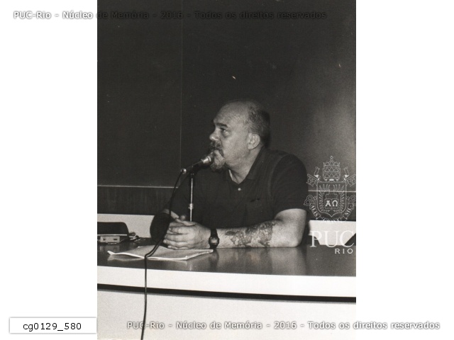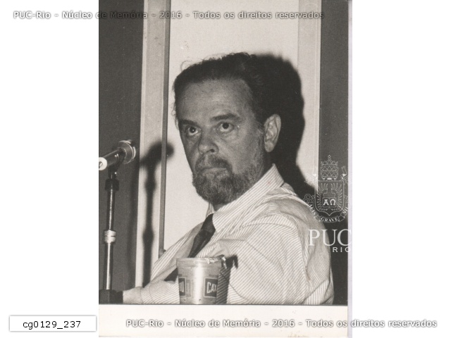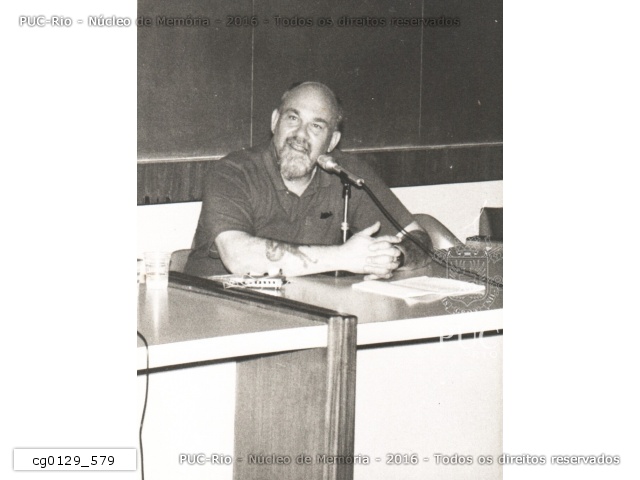 Quinta edição da Feira de Comunicação Social da PUC, que aconteceu do dia 28 de outubro a 1 de novembro de 1991. Na foto, está o cientista político, ex-deputado federal e articulista do Jornal do Brasil Marcio Moreira Alves, que foi um dos palestrantes da Feira. |