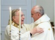O Papa Francisco cumprimenta o pe. Ivern S.J. durante missa realizada na residência dos Jesuítas no Sumaré. |
