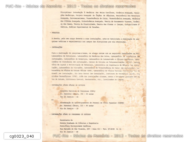 Informativo dos Programas de Pós-Graduação em Ciências e Engenharia da PUC/RJ. Secretaria na sala 413 do Edifício Cardeal Leme. Instalações. |