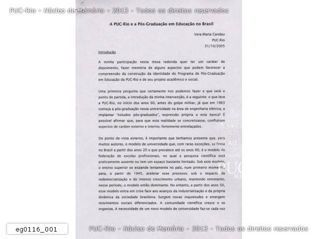 A PUC-Rio e a Pós-Graduação em Educação no Brasil - eg0116_001 |
