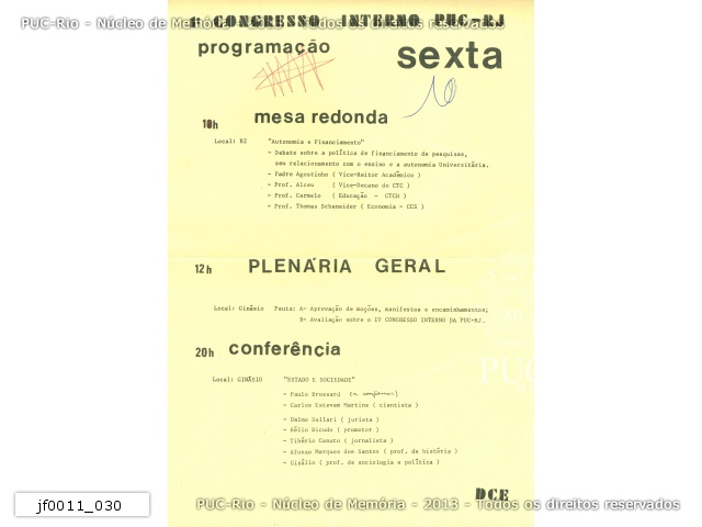 Acervo do professor Alfredo Jefferson relacionado ao DCE da PUC-Rio - jf0014_074 |