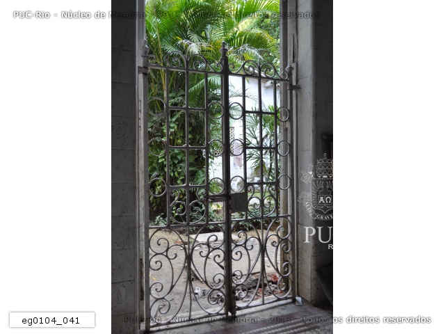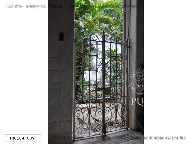 Detalhe do portão localizado na sede do curso de Ciências Biológicas da PUC-Rio. |