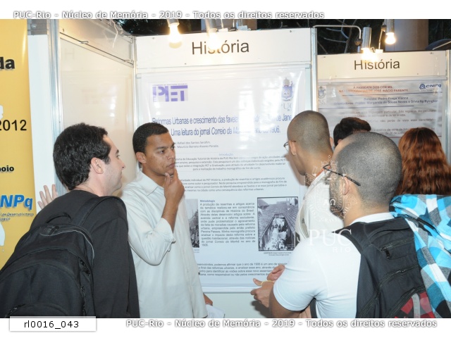 O bolsista de iniciação científica do Núcleo de Memória da PUC-Rio, Pedro Fraga, apresentação seu poster. |