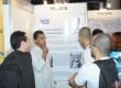 O bolsista de iniciação científica, Pedro Fraga, apresenta o poster sobre sua pesquisa para outros alunos. |