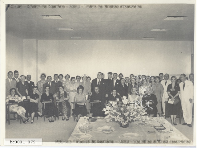 Chá oferecido pelo Reitor nas obras do ed. Cardeal Leme, provavelmente às patronesses das campanhas financeiras da PUC-Rio. |