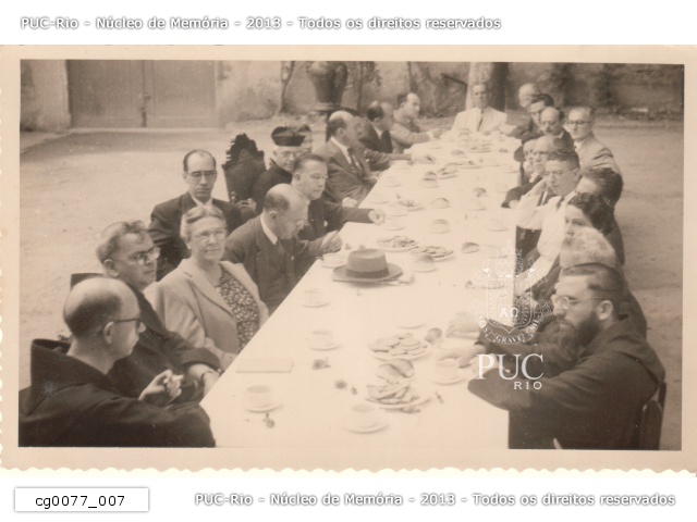 Padre Leonel Franca S.J. e convidados, no almoço em comemoração ao Dia do Reitor, no auditório da antiga sede das Faculdades Católicas na rua São Clemente. |