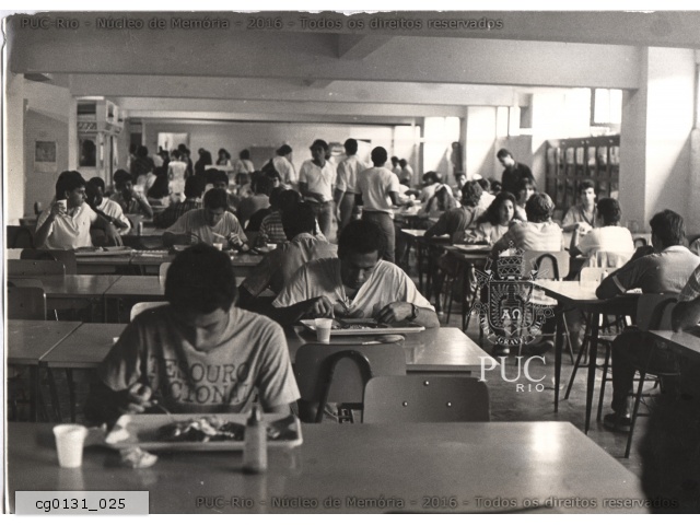 Imagem de alunos e funcionários almoçando no bandejão da PUC-Rio |