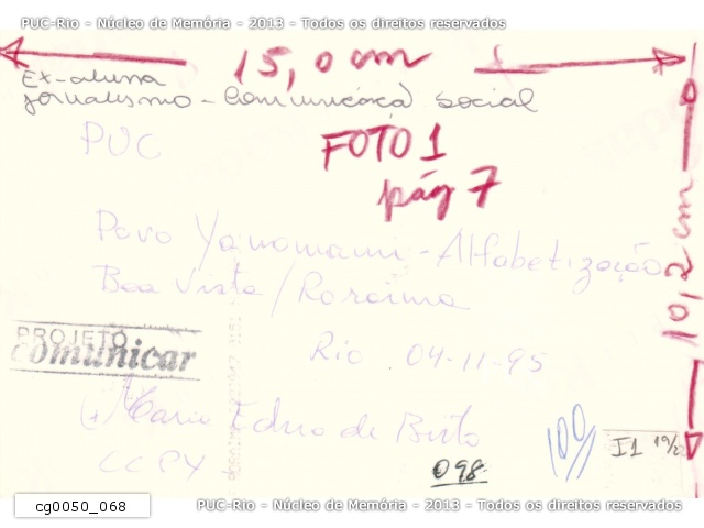 04/11 - Povo Yanomami - Boa Vista/Roraima - Mario Edno de Brito, Verso do metadados cg0050_067 |