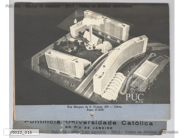 Capa de calendário referente ao ano de 1959, contendo a maquete do campus Gávea. |