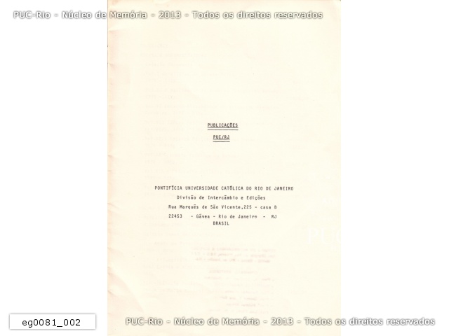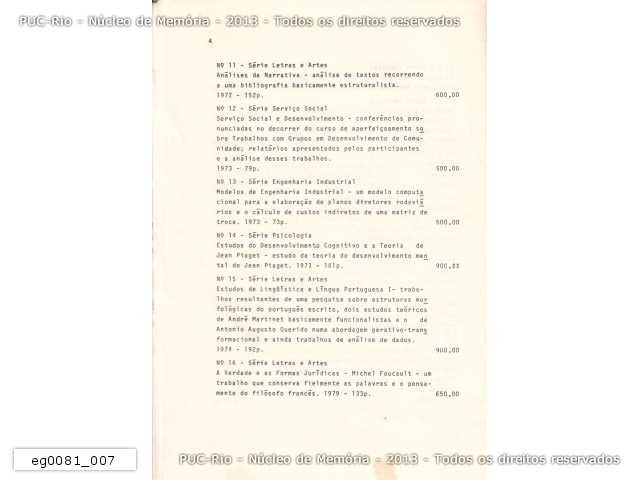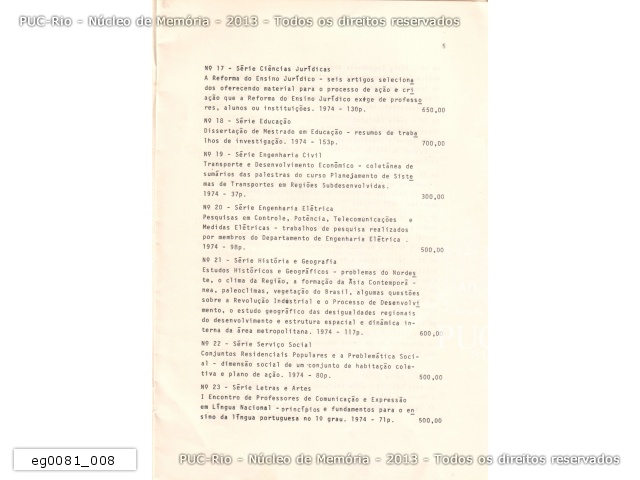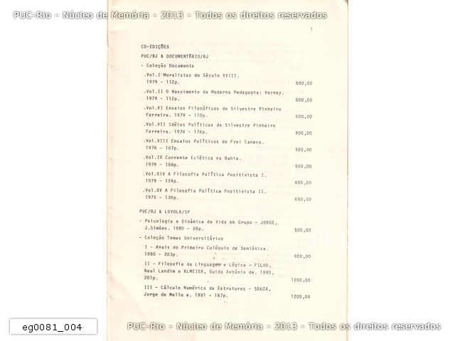 Lista de publicações PUC-Rio/Vozes, PUC-Rio/MEC Funarte e Cadernos da PUC-Rio. |