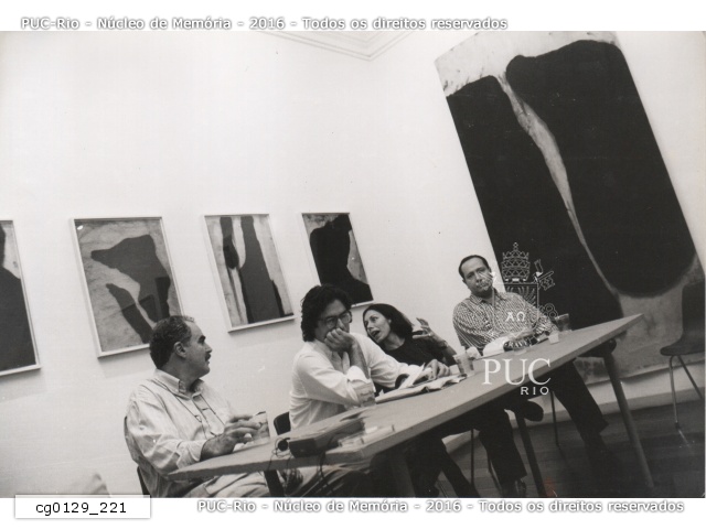 Exposição no Solar Grandjean de Montigny que provavelmente fez parte da exposição "Índio quer apito", que esteve em cartaz entre 31 de julho e 18 de agosto de 1990. Os artistas plásticos foram Andréa de Baginsk, Bernardo Stambowsky, José Damasceno e Lia do Rio. |