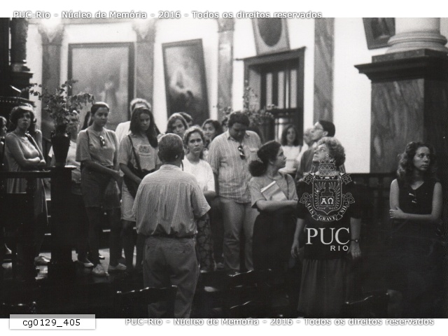 A professora Margarida de Souza Neves com o Grupo Rio em visita ao Templo Positivista, localizado no bairro da Glória, no Rio de Janeiro. O Grupo Rio fazia passeios pela cidade com o objetivo de conhecê-la a partir do olhar historiador. |
