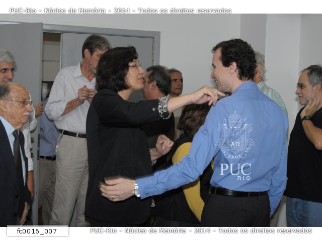 Professor Silva Mello recebe os cumprimentos do Professor Luiz Fernando Martha. |