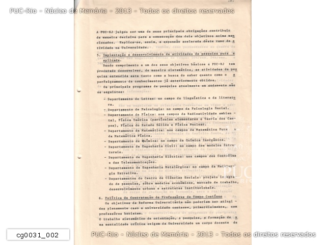 Relatório sobre a Reforma Universitária na PUC-Rio. - cg0031_006 |