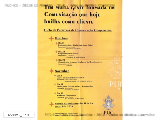 Coleção de folders do Programa de Pós-Graduação em Comunicação Social da PUC-Rio. - ab0025_018 |