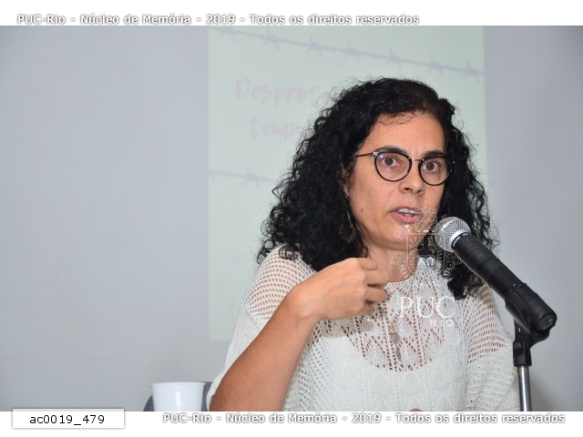 Laís Martins Costa Araujo, assistente social pela Universidade Federal do Rio de Janeiro (2010) e mestre em Serviço Social pela Pontifícia Universidade Católica do Rio de Janeiro (2019) na palestra sobre Violência e Saúde: limites e desafios para atendimento a casos de violência doméstica na Maré por profissionais da Atenção Básica à Saúde no seminário Desproteção social em tempos de barbárie. |