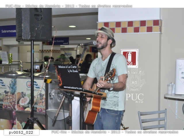 O músico Vinni Azevedo canta e toca na festa de comemoração do Dia dos Pais realizada do Bandejão da PUC-Rio |
