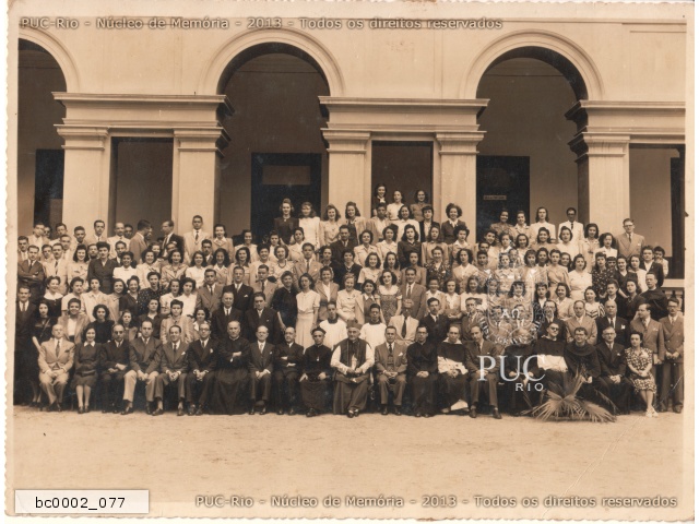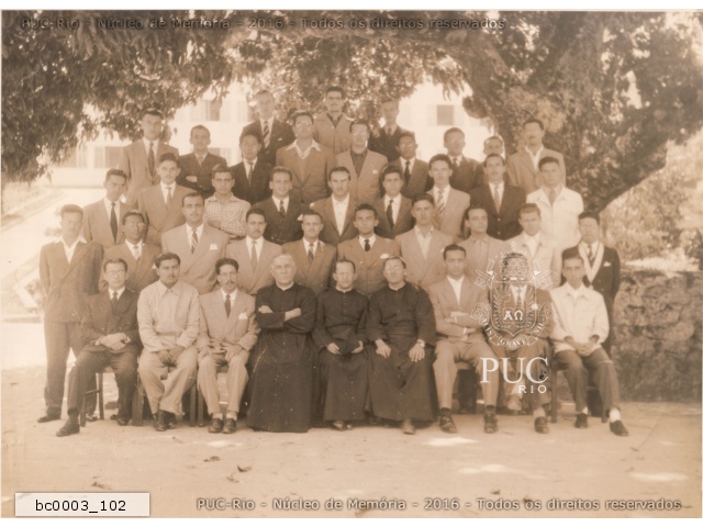 Turmas de 2o e 3o ano de Geografia e História. Ao centro, o idealizador da PUC-Rio, Padre Leonel Edgar da Silveira Franca S.J., e o Padre Velloso S.J.. |
