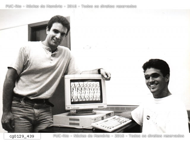 Fotografia publicada no Jornal da PUC em matéria sobre os alunos Alexandre e Alessandro do curso de Desenho Industrial que, por conta de uma disciplina cursada no primeiro período, decidiram abrir uma empresa de design chamada Stereo Desing. |