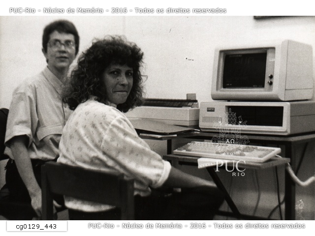 O Centro Técnico Científico da PUC-Rio iniciou os testes do projeto da Vice-Reitoria Acadêmica para facilitar a administração do volume de dados gerados a cada período na Universidade por meio de um programa para computadores. Na fotografia, a professora Ana Pavani ao fundo, responsável pela parte técnica do projeto, treina a secretária do Ciclo Básico do CTC, Lacy Lemos. |