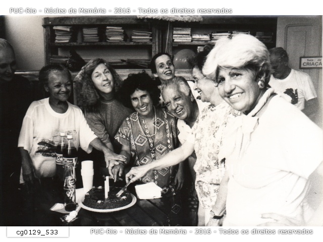 Fotografia utilizada em matéria do Jornal da PUC sobre a turma de teatro para terceira idade na Casa da Gávea. As aulas eram ministradas pela atriz Cristina Pereira. |