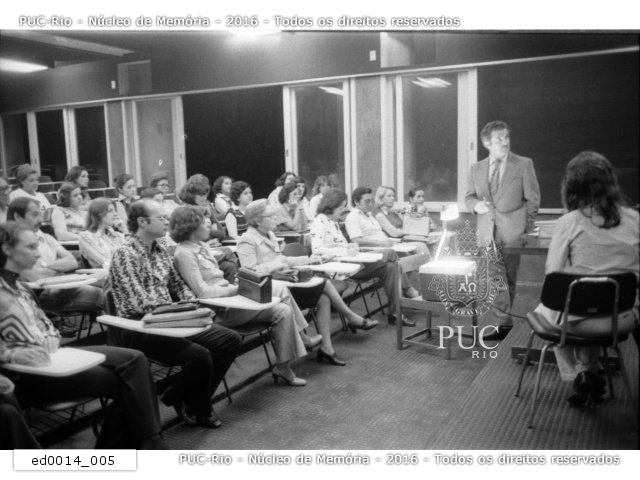 A diretora do Departamento de Educação, profa. Hedy Vanconcellos, apresenta o departamento no Seminário Interno do CTCH, realizado na Casa da Gávea nos dias 27 e 28 de setembro de 1979. O seminário promoveu a troca de informações e a integração entre os departamentos constitutivos do CTCH e seus respectivos diretores para a elaboração de um Plano Diretor da PUC-Rio. |