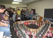 Alunos da profa. Geiza, com carros robóticos em uma pista feita com papelão. |