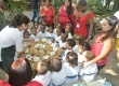 Alunos do grupo BioChip mostram o processo de produção dos alimentos para crianças. |