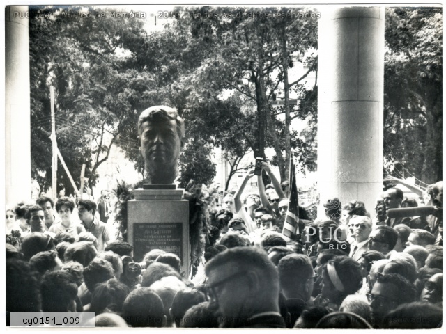 O senador Robert (Bob) Kennedy cercado pelo público na inauguração do busto de seu irmão, John Kennedy, nos pilotis do Edifício da Amizade. |