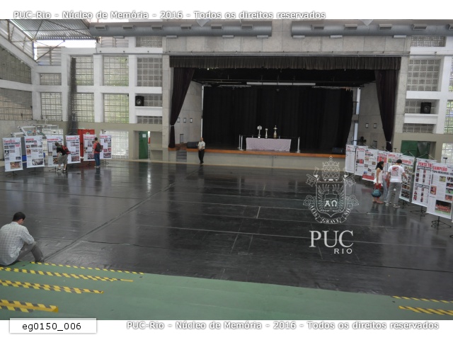 Exposição sobre a história do time do Flamengo no ginásio da PUC-Rio. |