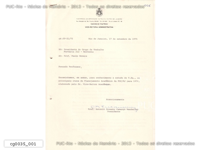 Planejamento Acadêmico da PUC/RJ em vista da elaboração do orçamento para 1976 - cg0035_007 |