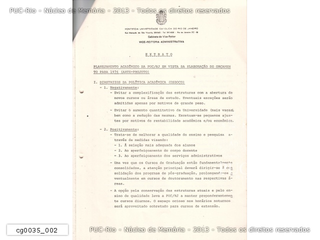 Planejamento Acadêmico da PUC/RJ em vista da elaboração do orçamento para 1976 - cg0035_002 |