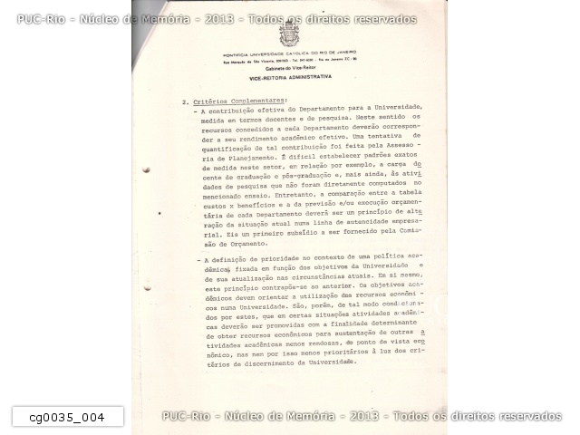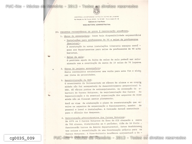 Planejamento Acadêmico da PUC/RJ em vista da elaboração do orçamento para 1976 - cg0035_004 |