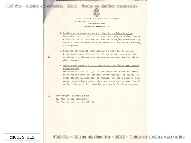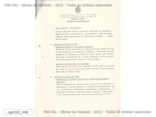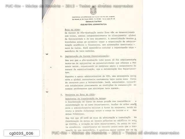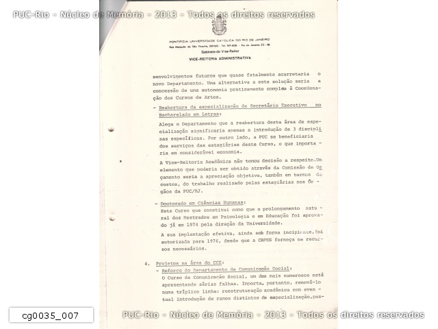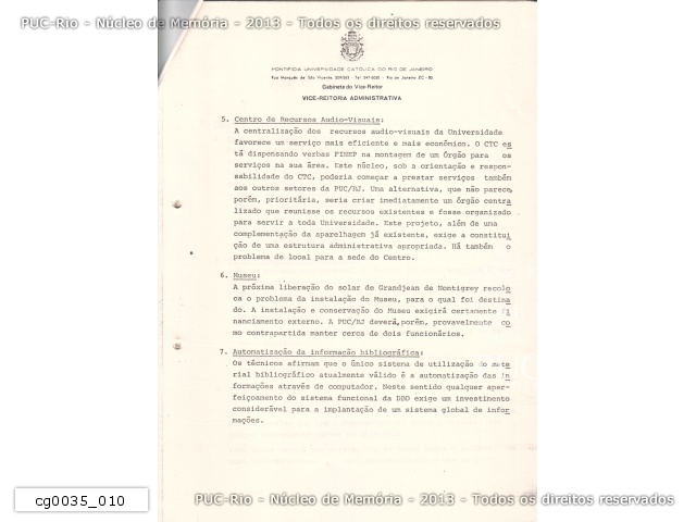 Projeto do Centro de Memória da PUC/RJ - 1987 - cg0021_034 |