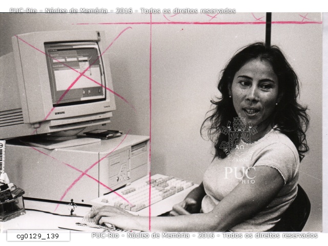 Aluno utilizando o Laboratório de Visualização, chamado "Laboratorium", que funcionava no segundo andar do RDC. |