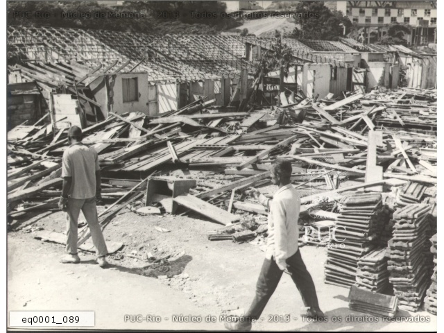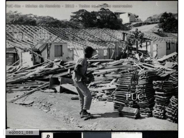 eq0001_088 | 11/4/1970 | Parte das casas do Parque Proletário demolidas, com pilhas de telhas. 11/04/1970. Acervo Correio da Manhã, Arquivo Nacional. |