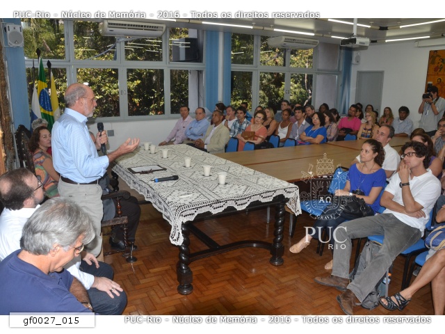 Pessoas presentes ao evento, durante a presentação do projeto e da estrutura do livro pela Profa. Margarida de Souza Neves (Núcleo de Memória). |