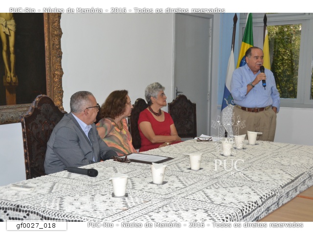 A profa. Margarida e o o Vice-Reitor para Assuntos Comunitários, prof. Augusto Sampaio, conversam com o Reitor da PUC-Rio. |