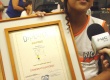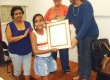 Tainara Gomes de Souza, de 9 anos, com o diploma que registra sua vitória na competição internacional "Como eu me vejo na minha profissão do futuro?". Crianças de 164 países participaram. Tainara, da 4ª série da Escola Municipal Luiz Delfino, se desenhou dando aula de matemática. |