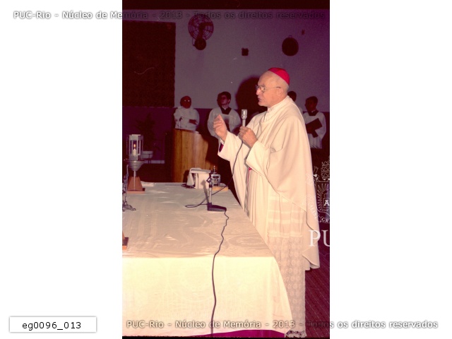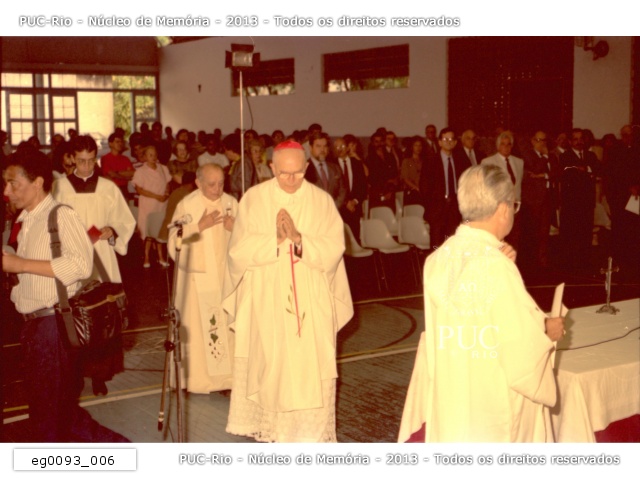 Dom Eugênio Sales e dom Helder Camara na Missa de Ação de Graças em homenagem aos 50 anos da PUC-Rio. |