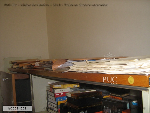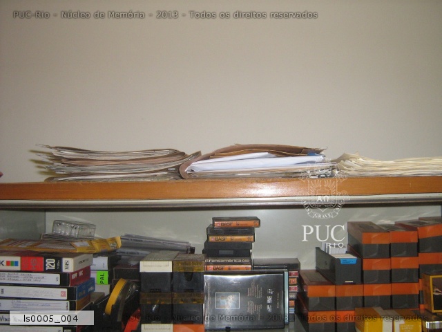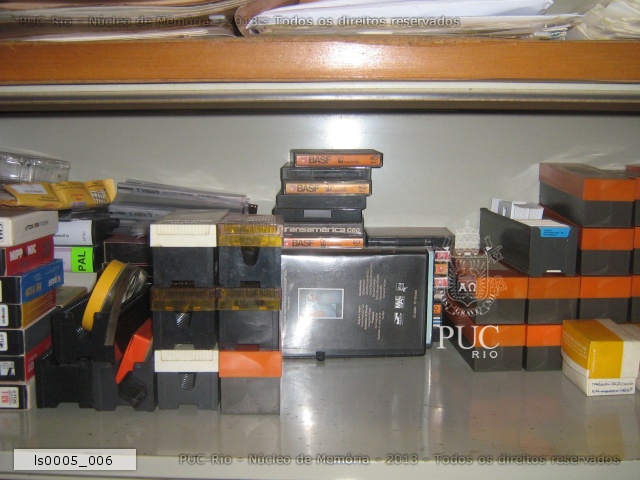 Bancadas com fitas VHS, fitas-cassete e slides no acervo do Solar Grandjean de Montigny |
