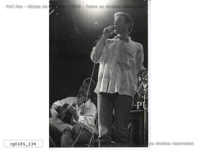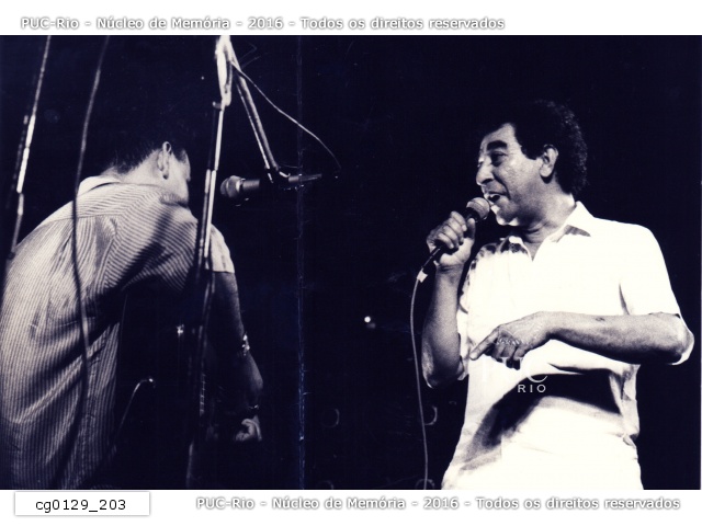 Cantor João Nogueira em show, organizado pelo Coletivo Cultural da PUC, em homenagem ao compositor João do Vale. |